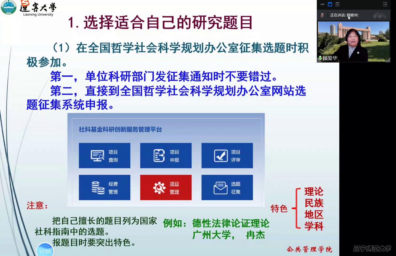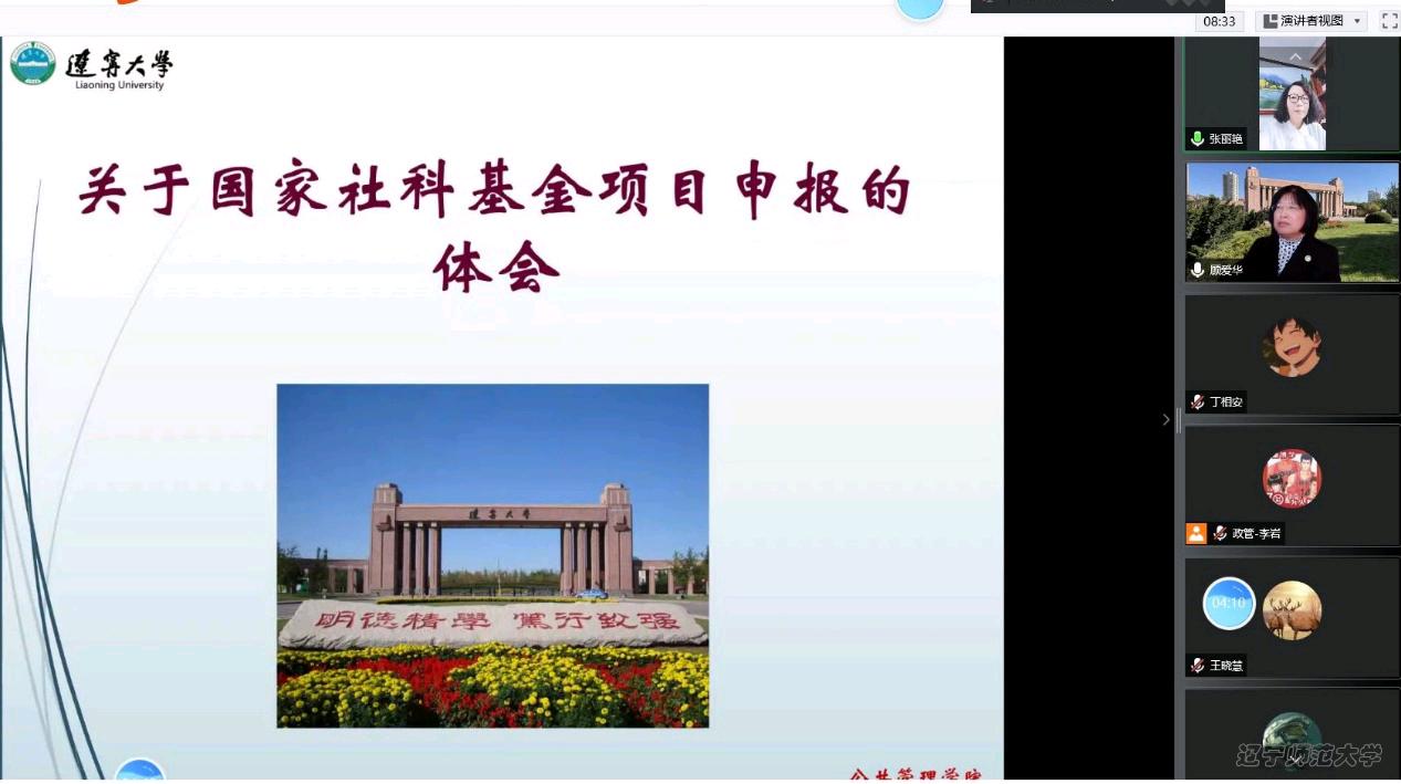 为进一步提高科研项目申报质量,提升万博体育app 师生科研能力,政府万博体育app 于2022年11月4日下午13:30通过腾讯会议的方式举办了学术活动。万博体育app 邀请了辽宁大学公共万博体育app 顾爱华教授作为主讲嘉宾,作了题为“关于国家社科基金项目申报技巧与体会”的学术报告。本次讲座由张丽艳副院长主持,政府万博体育app 教师和研究生线上参加了本次学术报告会。