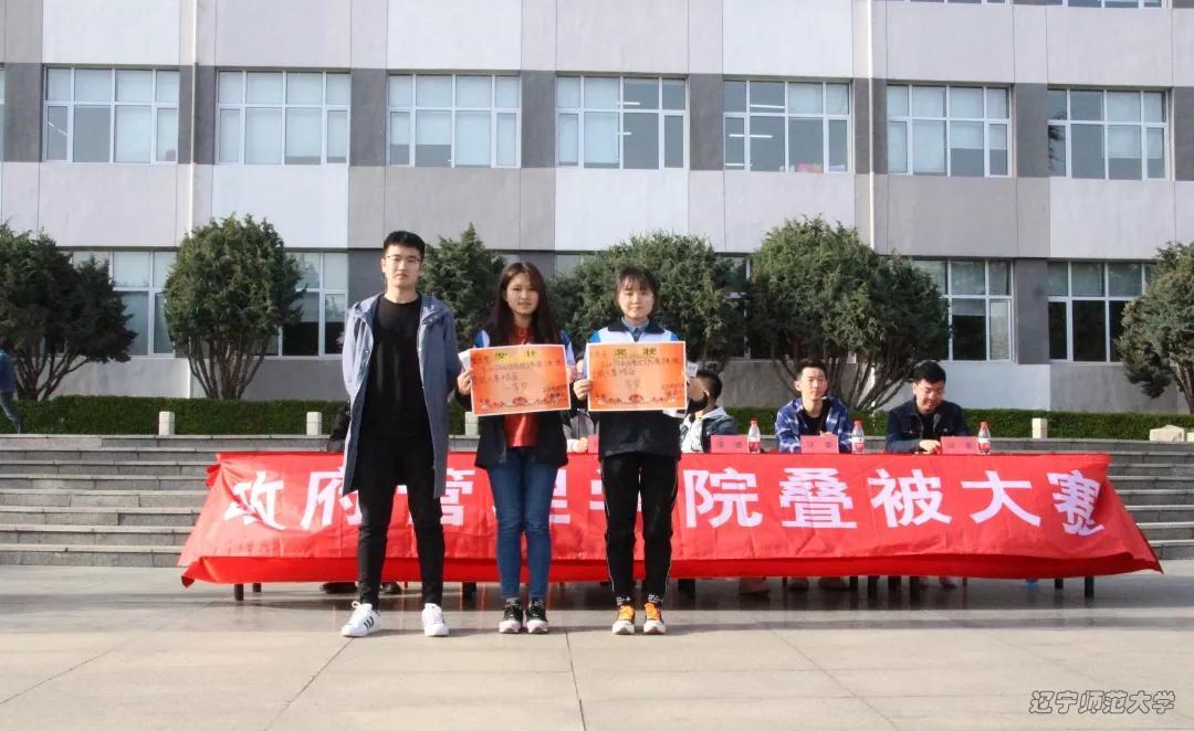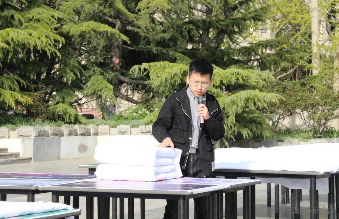 为了加强寝室文明建设,丰富同学们的课余生活,2019年4月21日下午3点,政府万博体育app 2018级“德才兼被”主题叠被大赛于文科楼小广场如期举行。政府万博体育app 团委书记车泉洋老师,辅导室唐志建老师出席本次大赛。