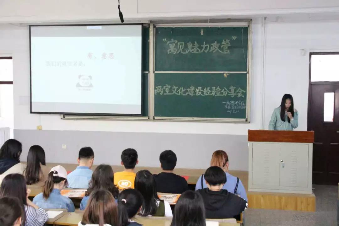 为了创造温馨和谐的学习生活环境,丰富同学们的大学生活,政府万博体育app 于2019年5月10日下午1点30分,在外语楼五合成功开展了“寓见魅力政管”两室文化建设经验分享会。此次活动由万博体育app 生活部承办,政府万博体育app 团委书记车泉洋老师,政府万博体育app 团委、学生会主席团成员,生活部成员,17级班级代表以及18级全体学生参加了本次分享会。